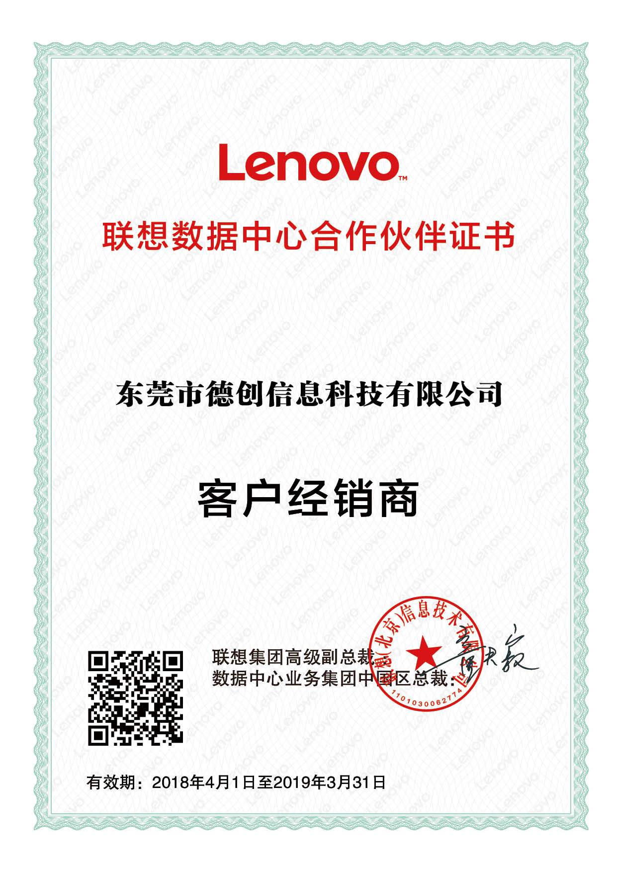 東(dōng)莞德創科(kē)技(jì)榮獲2019年(δ↕↑×nián)聯想認證經銷商