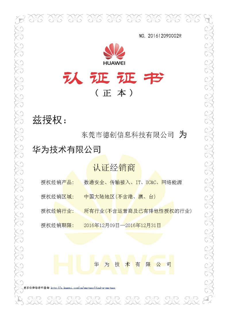 喜訊!!!恭喜東莞市翼動互聯信息科技有限公司獲得(‍•®de)華為(wèi)認證經銷商
