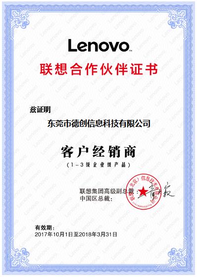 喜訊!恭喜東莞市翼動互聯信息科技有限公司獲得(de)聯想認證經銷商